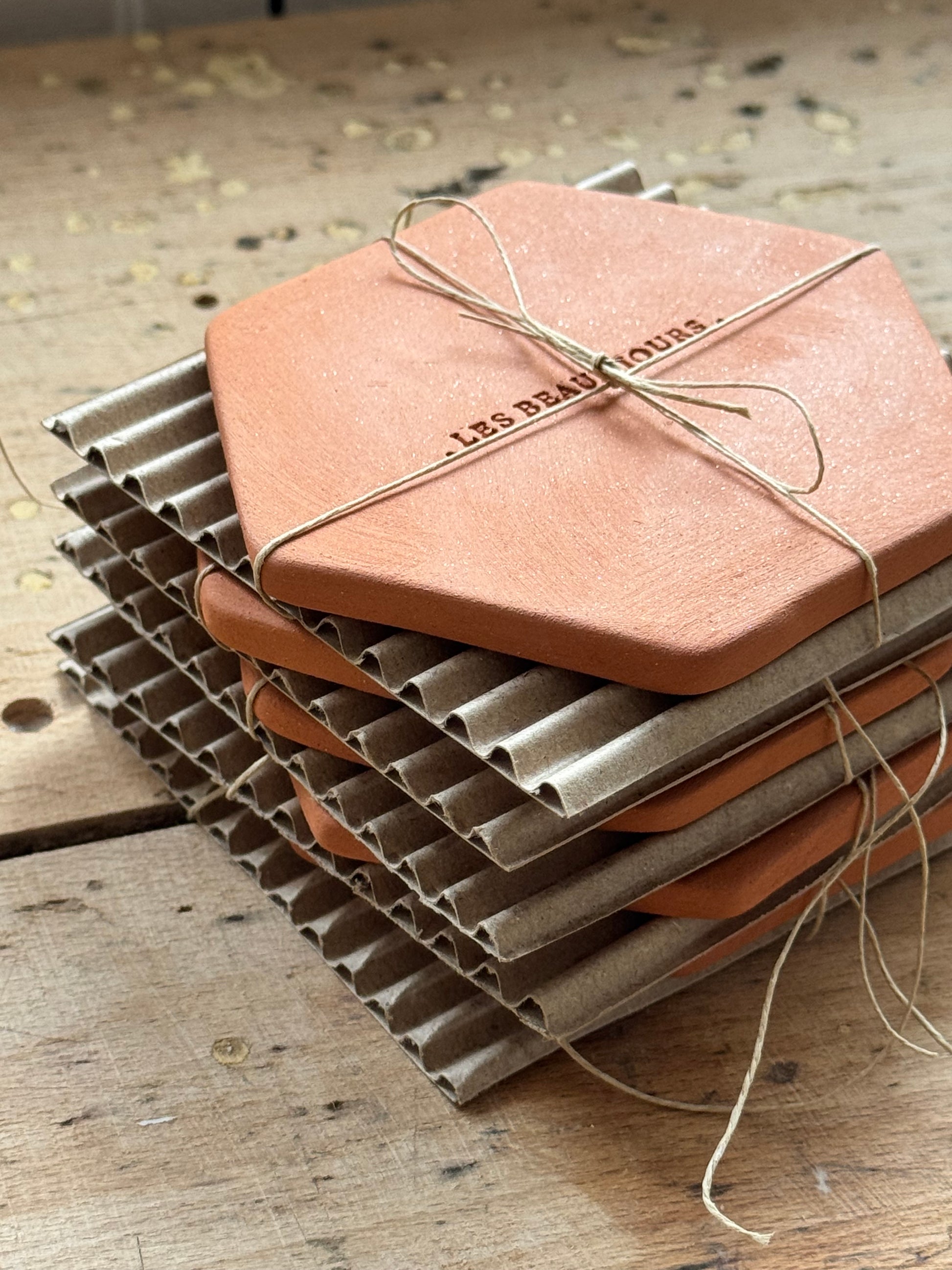 Ces tomettes sont fabriquées avec amour par Vanessa. Elles sont en argile terracotta locale de Salernes, reconnaissable à ses paillettes de mica qui scintillent doucement comme le soleil de Provence.