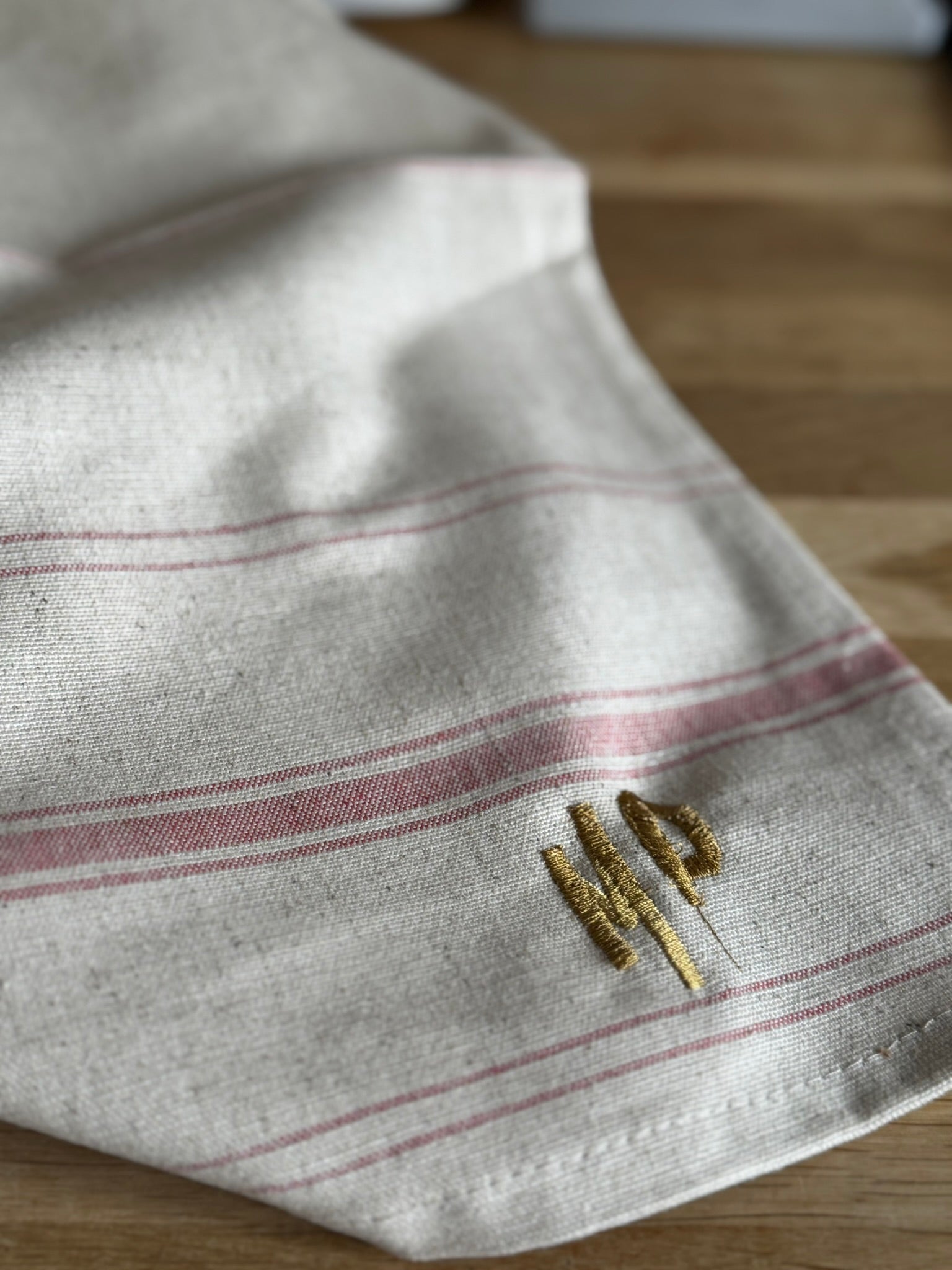 Nous vous proposons de personnaliser votre torchon avec une broderie : un petit mot doux , un prénom ... (maximum 15 caractères) :